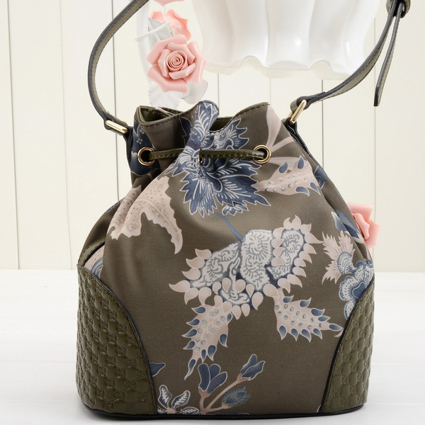 2015 Gucci Camouflage Leather Bucket Bag 354228 Khaki