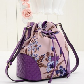 2015 Gucci Camouflage Leather Bucket Bag 354228 Purple