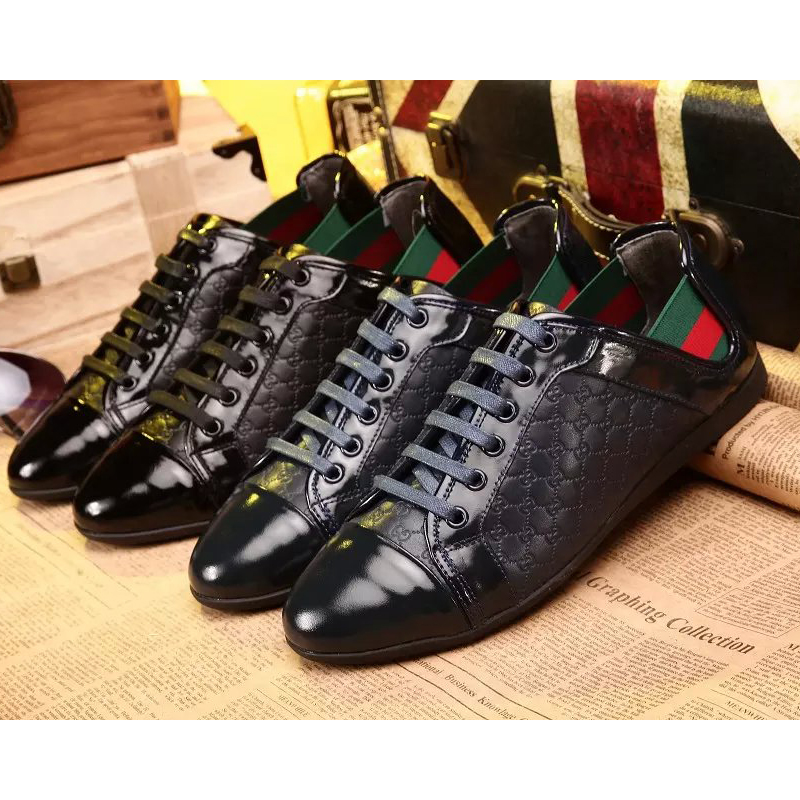 2015 Gucci men embossed patent leather strap sports casual shoes