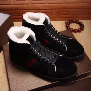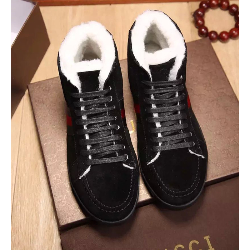 2016 Gucci Nubuck leather inside wool men Lace-up sneaker shoes