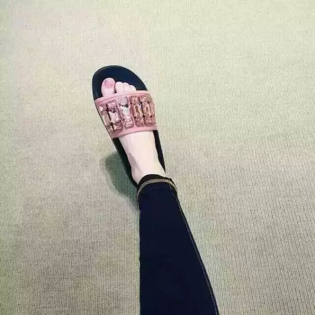 2016 gucci women Slippers With Rhinestone