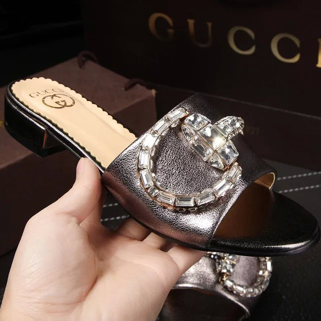 2016 gucci women Slippers in Calfskin leather with Rhinestone