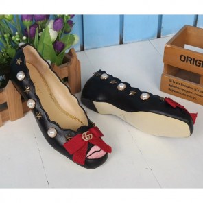 2017 gucci women Flat shoes in Calfskin leather with pearl