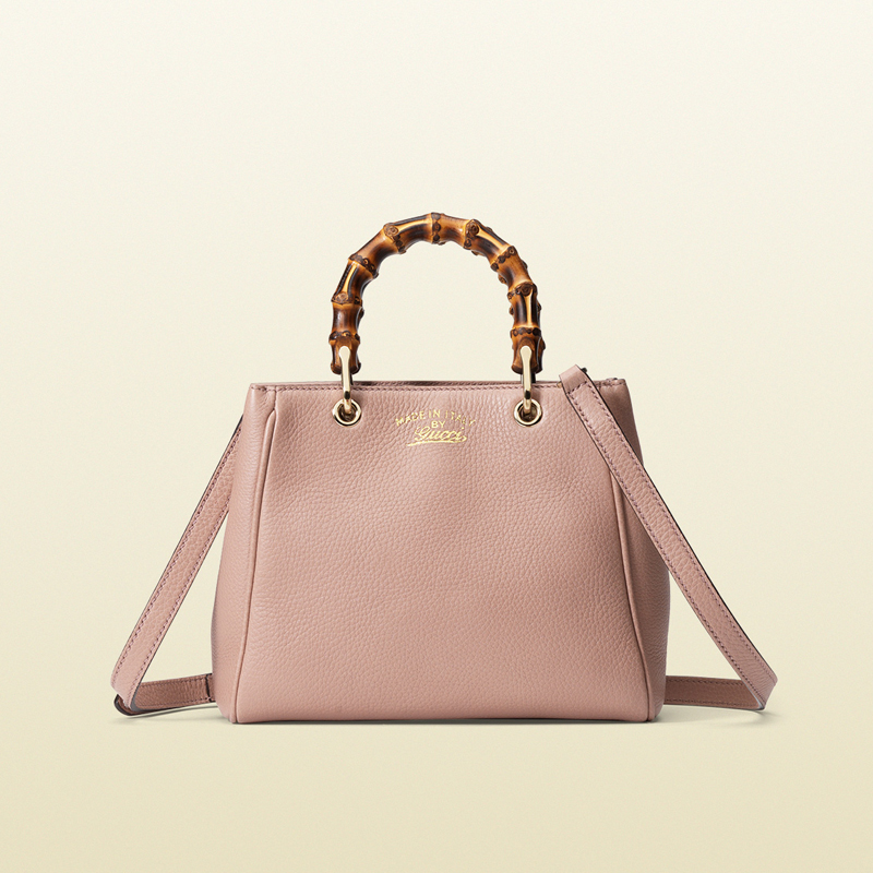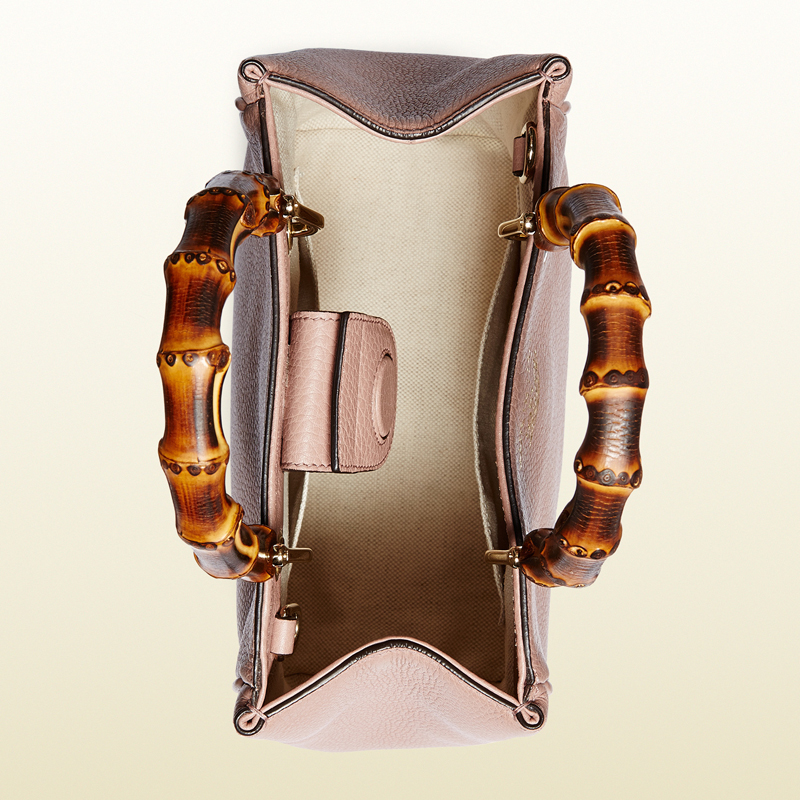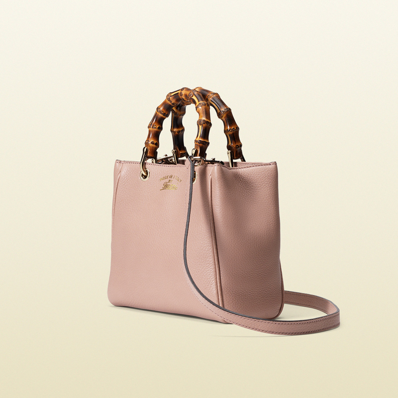 this mini bamboo shopper may be small in stature but its iconic bamboo handle and elegant shape make it the perfect cocktail attire accomplice. crafted in our light, natural grain leather.