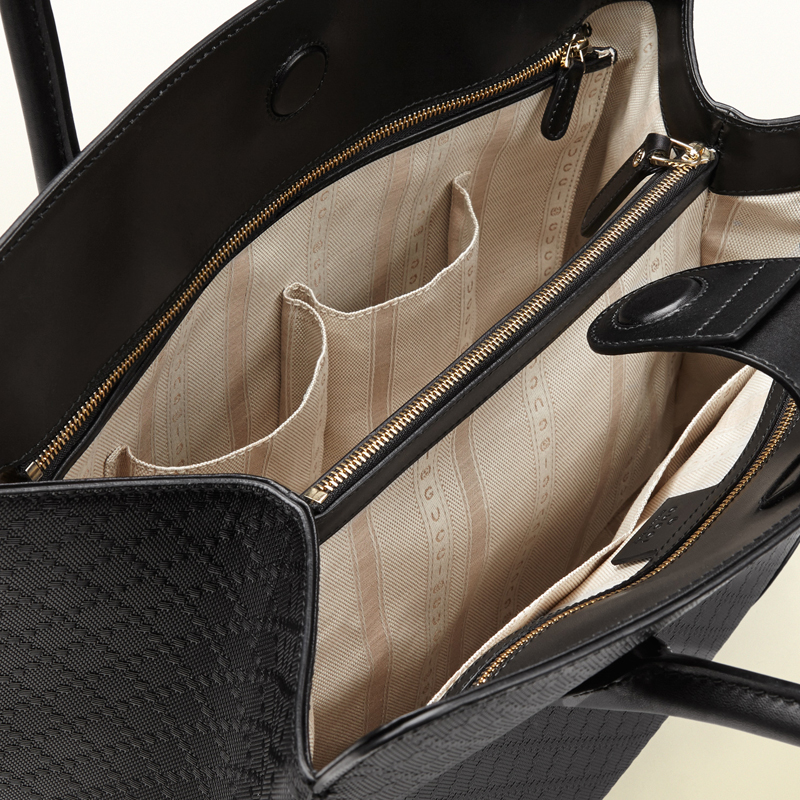 - leather tag with dry-stone embossed gucci trademark