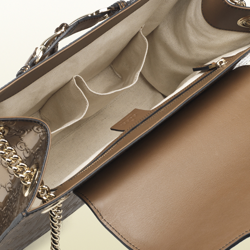 - maple brown shiny guccissima leather with maple brown shiny guccissima leather trim