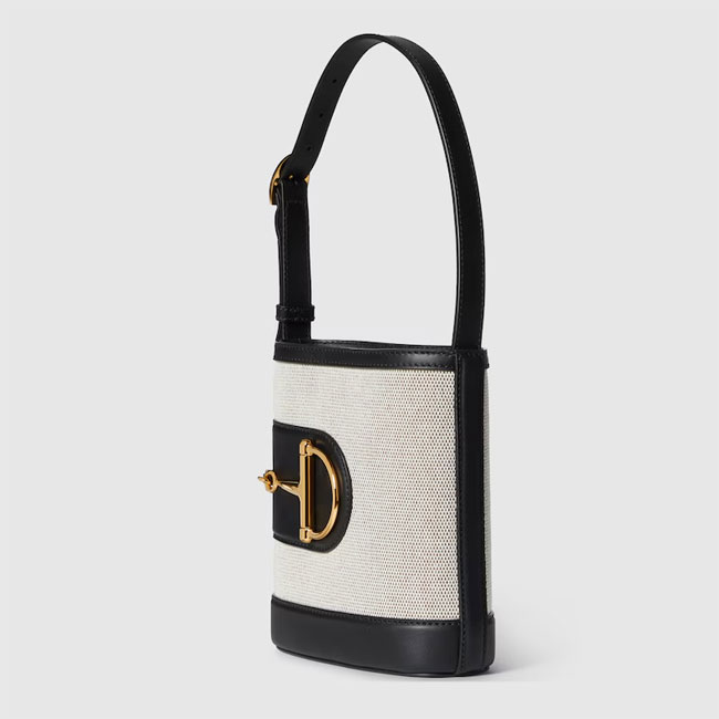 In the Spring Summer 2025 collection, the Gucci 73 is inspired by an archival bucket bag from its eponymous year. It features a contemporary take on the Horsebit hardware, and can be worn crossbody, over the shoulder or held as a handbag.