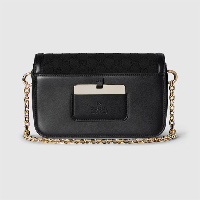 The Gucci Go is made for movement. In the Spring Summer 2025 collection, this shoulder bag is characterized by sophisticated yet lightweight GG canvas and a refined chain strap. It also features functional internal organization, and a detachable mirror on the back.