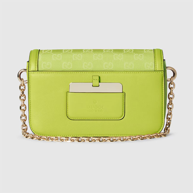 The Gucci Go is made for movement. In the Spring Summer 2025 collection, this shoulder bag is characterized by sophisticated yet lightweight GG canvas and a refined chain strap. It also features functional internal organization, and a detachable mirror on the back.