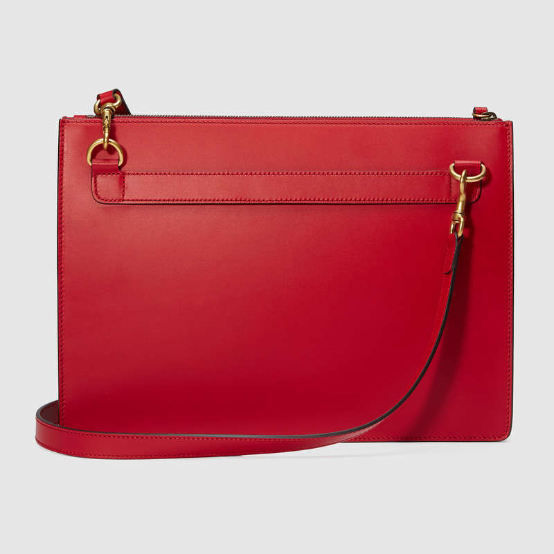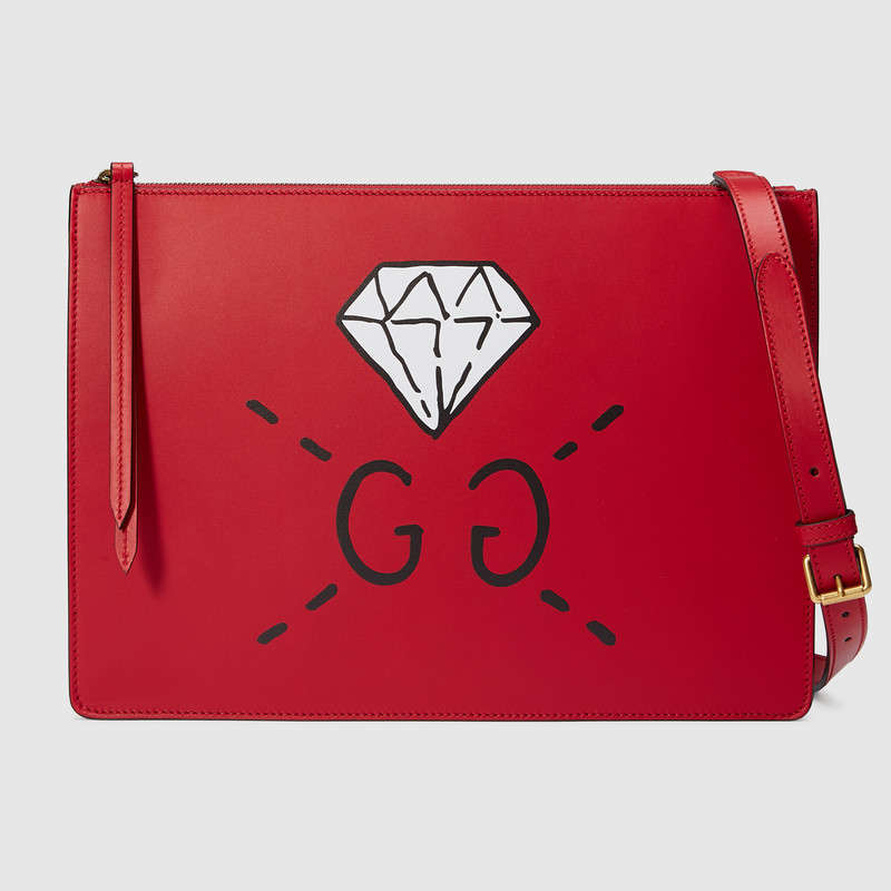 - Hibiscus red leather with GucciGhost print-the print is placed by hand using a new technique to achieve the irregular strokes and dripping color effect