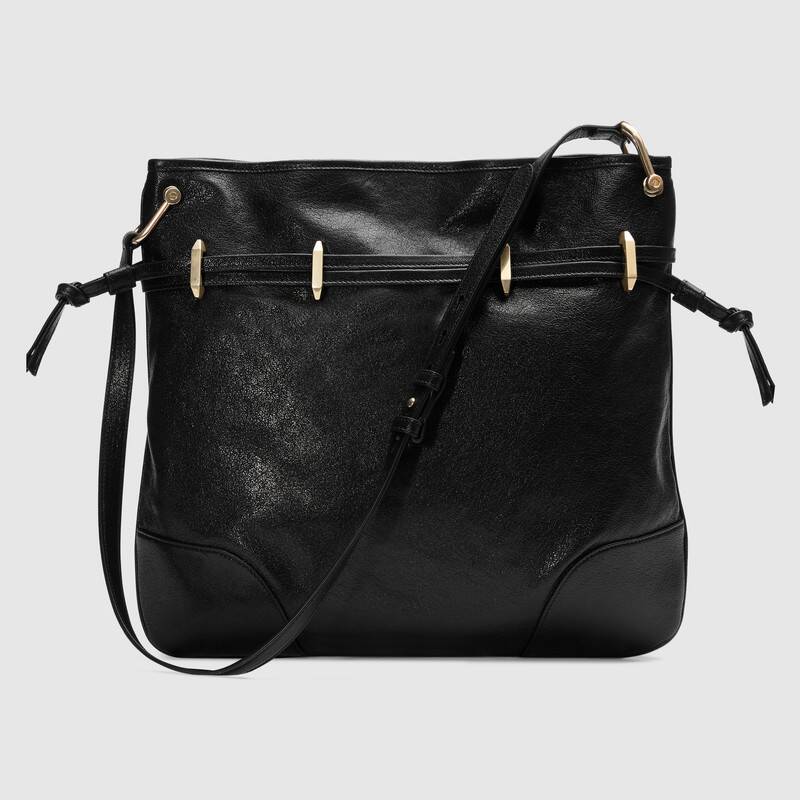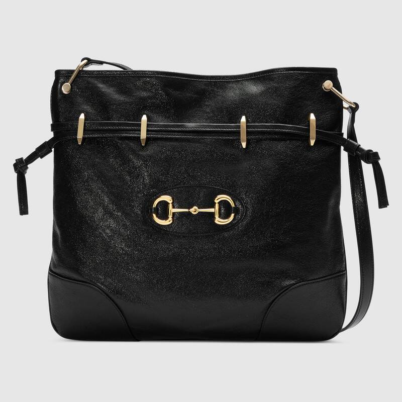 Inspired by archival designs, Gucci 1955 Horsebit messenger bag unifies the original details first introduced over six decades ago with a modern spirit, highlighting the Horsebit. Part of Gucci鈥檚 genetic code, the double ring and bar design has been established as one of the most distinctive elements among the House symbols borrowed from the equestrian world. The hardware is paired with soft black leather and a detailed drawstring closure detail.