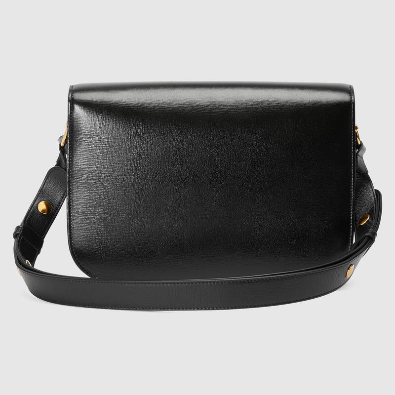 Introduced for Cruise 2020, the Gucci 1955 Horsebit bag is recreated from an archival design. With the same lines and forms first introduced over six decades ago, the accessory unifies the original details with a modern spirit, highlighting the Horsebit. Part of Gucci鈥檚 genetic code, the double ring and bar design has been established as one of the most distinctive elements among the House symbols borrowed from the equestrian world. Presented on a small flap shoulder bag, the hardware is paired with textured black leather and completed with a special mechanism that adjusts the length of the shoulder strap so it can be carried on one shoulder or cross body.