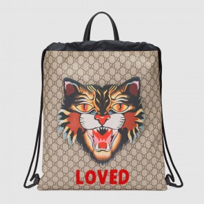 Gucci Angry Cat print soft GG Supreme drawstring backpack 473872 9AV2T 8652