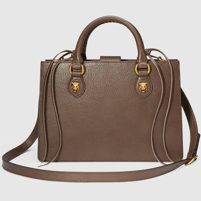 The Gucci Animalier top handle bag incorporates the now iconic feline head as small accent on the handles. Alessandro Michele has continually connected the animal world with his designs-bringing the beauty of nature into the forefront. Made in our imprinted leather that replicates one of our original materials.