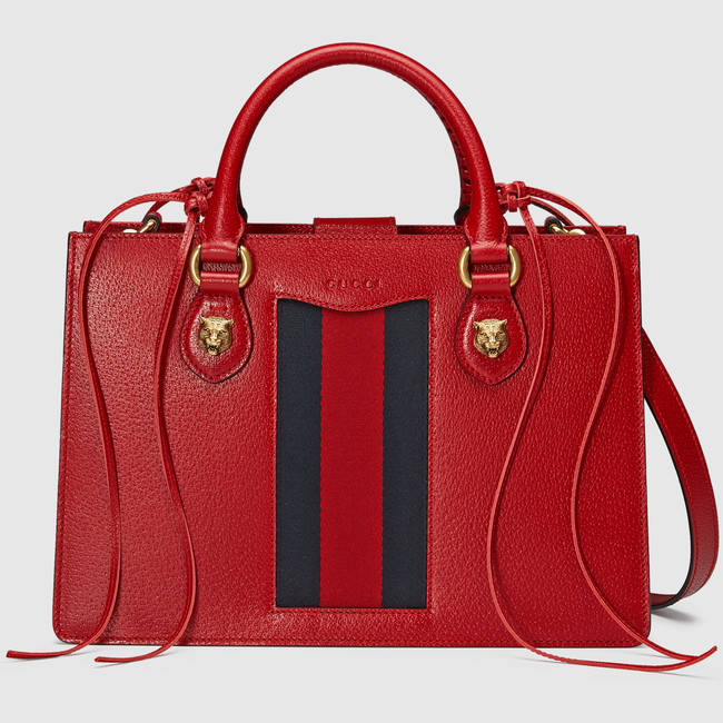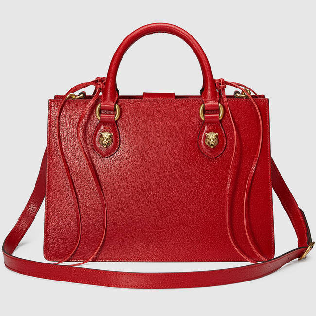 The Gucci Animalier top handle bag incorporates the now iconic feline head as small accent on the handles. Alessandro Michele has continually connected the animal world with his designs-bringing the beauty of nature into the forefront. Made in our imprinted leather that replicates one of our original materials.
