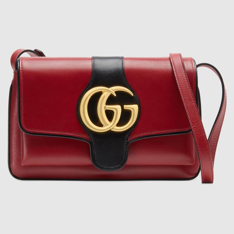 The small Arli shoulder bag is designed in a bold red and black combination for Pre-Fall 2019. The front is enriched with the Double G hardware in shiny gold-toned metal鈥攁 House code brought back from the 1970s archives. The retro inspired silhouette was first presented in the Cruise 2019 fashion show, revealed in the evocative setting of the Roman necropolis of Promenade des Alyscamps, in the French town of Arles鈥攚hich gives the name to the line.