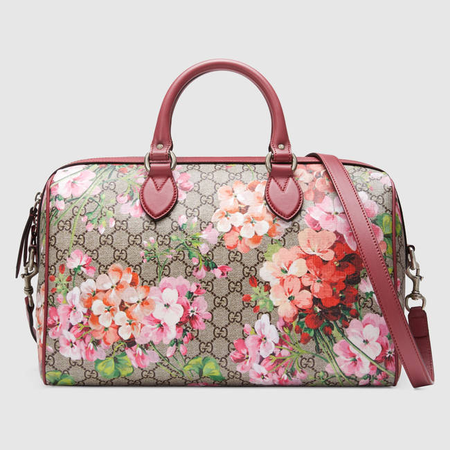 A boston bag shape in our Blooms print GG Supreme canvas. The handles have been hand-stitched with a padded base.