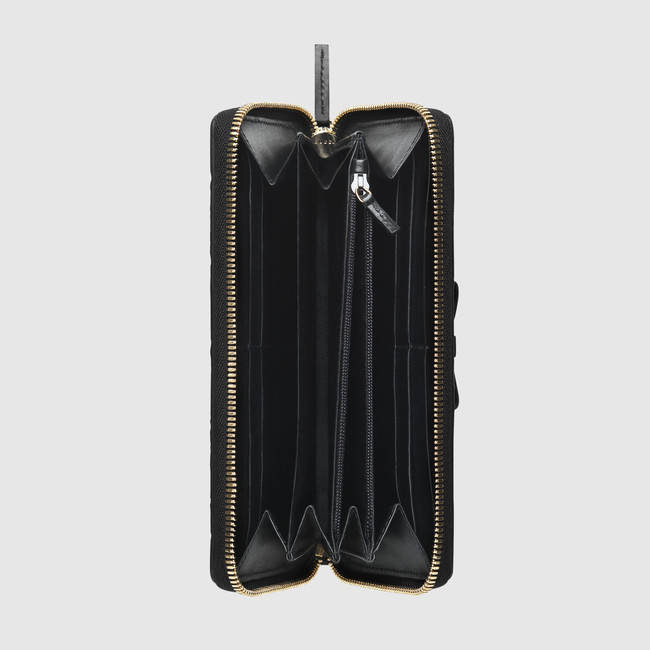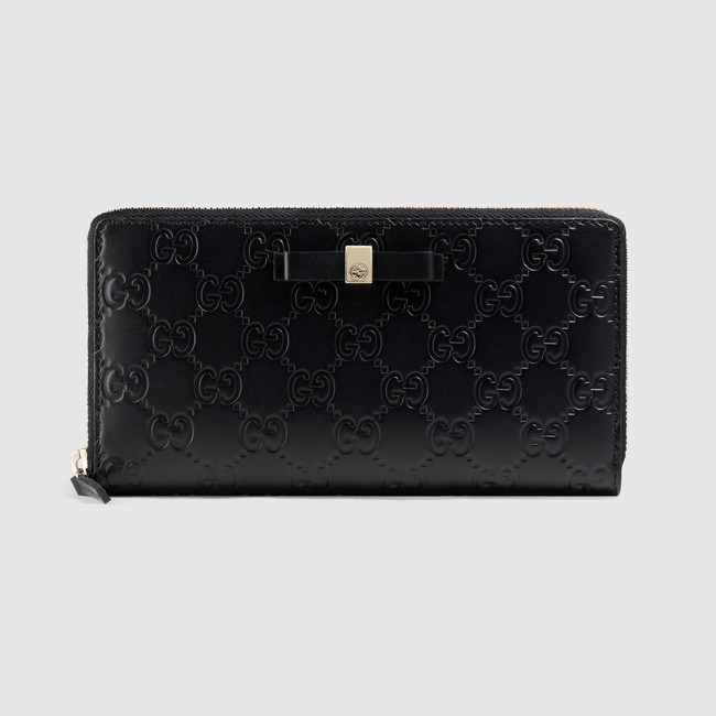 With a front bow, this zip around wallet is made in our embossed Gucci Signature leather.