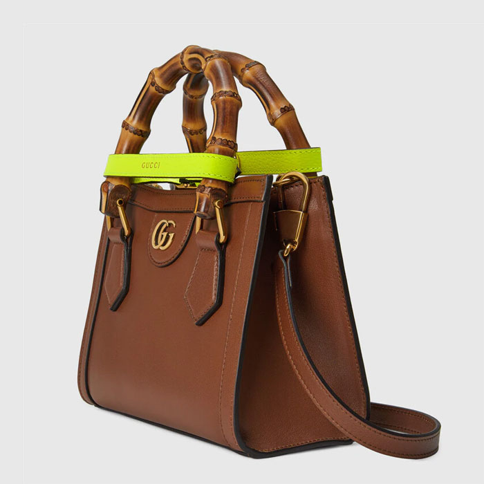 Combining recognizable elements of the House, the mini tote bag is defined by its bamboo handles and Double G hardware. Crafted from black leather, the accessory is further accentuated by two neon bands, a playful reference to the bands used to keep handles in shape.