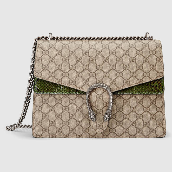 - Beige/ebony GG Supreme canvas, made using an earth-conscious process, with green python detail