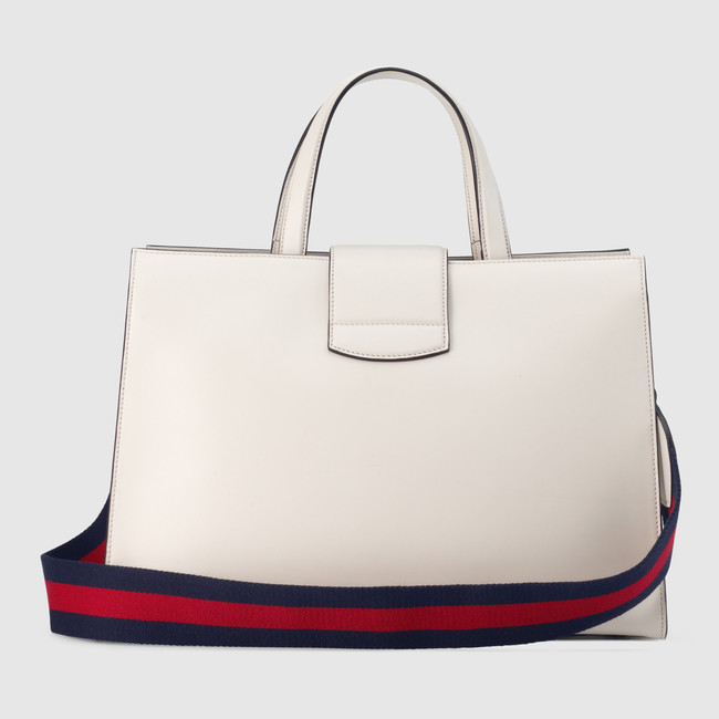 A new top handle bag in the Dionysus collection with the tiger heard closure-a unique detail referencing the Greek god Dionysus, who in myth is said to have crossed the river Tigris on a tiger sent to him by Zeus. Made in smooth, soft leather with a natural shine and supple appearance.