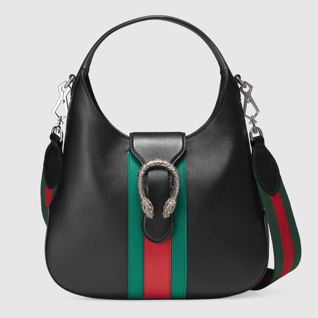 The Dionysus hobo is a new shape this season complete with the tiger heard closure-a unique detail referencing the Greek god Dionysus, who in myth is said to have crossed the river Tigris on a tiger sent to him by Zeus. Made in smooth, soft leather with a natural shine and supple appearance.
