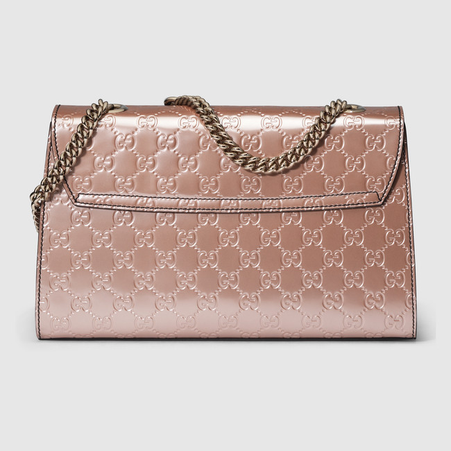 - light pink shiny guccissima leather with light pink shiny leather trim
