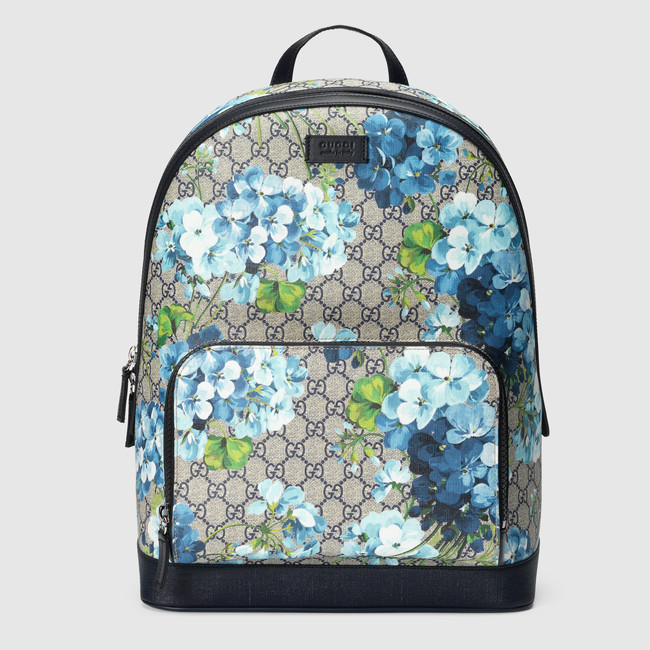 First appearing in the Fall Winter 2015 women鈥檚 fashion show, our distinctive Blooms motif is presented for the first time in blue. The tapestry inspired print evokes the look of a canvas painting, printed on signature GG Supreme canvas.