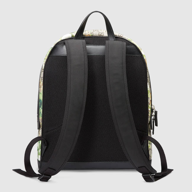 GG Supreme canvas backpack with Blooms print, finished with leather details and rubberized hardware.
