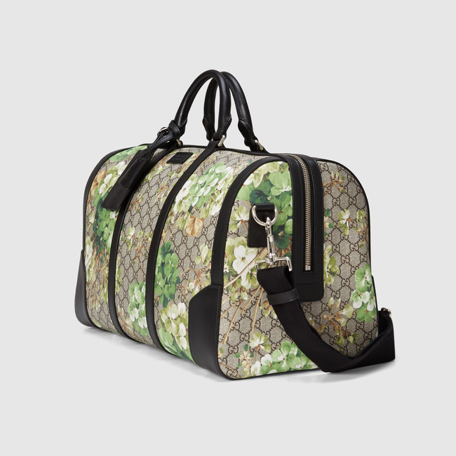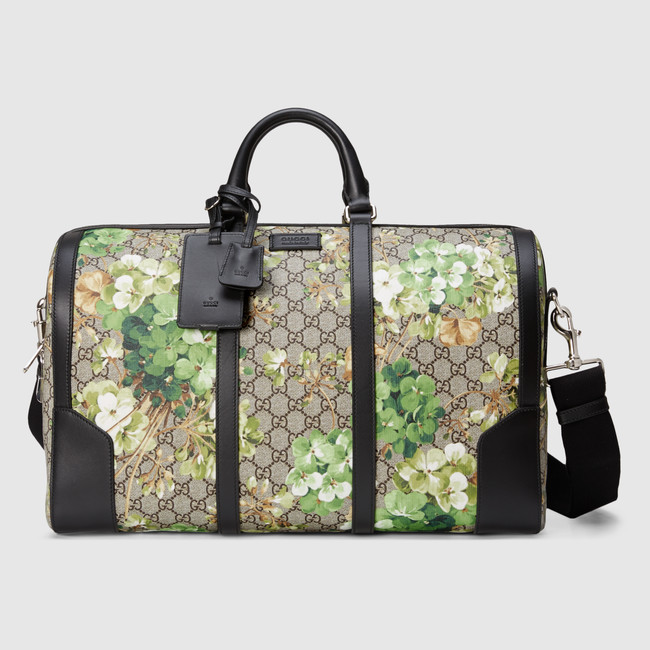 Medium size duffle in GG Supreme canvas with Blooms print.