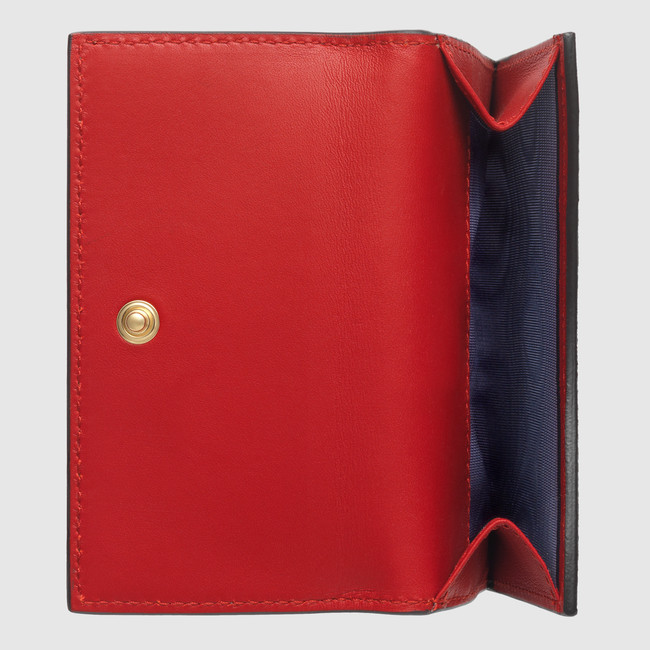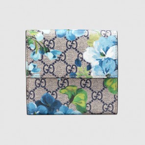 A french flap wallet in our Blooms print on our GG Supreme canvas. The GG Blooms print was first presented throughout the Fall/Winter 2015 Fashion Show collection and has continued to evolve as an iconic Gucci design.