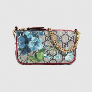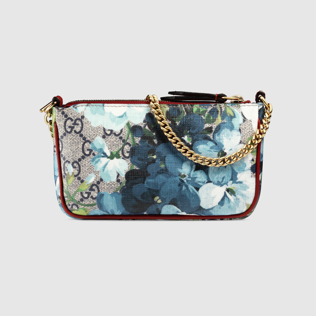 A mini chain bag in our Blooms print on our GG supreme canvas. The GG Blooms print was first presented throughout the Fall/Winter 2015 Fashion Show collection and has continued to evolve as an iconic Gucci design.