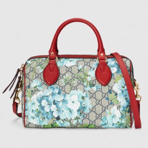 A small boston bag shape in our GG Blooms Supreme canvas. The handles have been hand-stitched with a padded base. The GG Blooms print was first presented throughout the Fall/Winter 2015 Fashion Show collection and has continued to evolve as an iconic Gucci print.