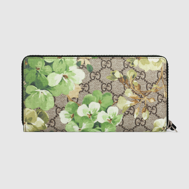 Zip around wallet in GG Supreme canvas with Blooms print.