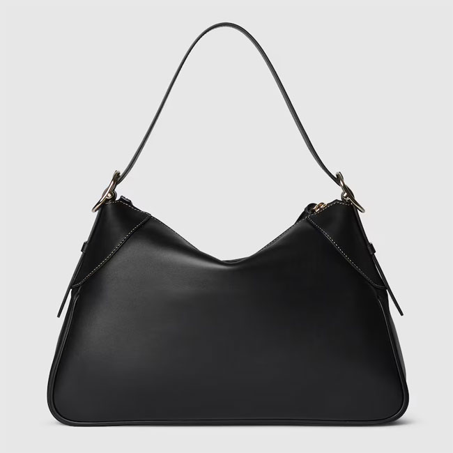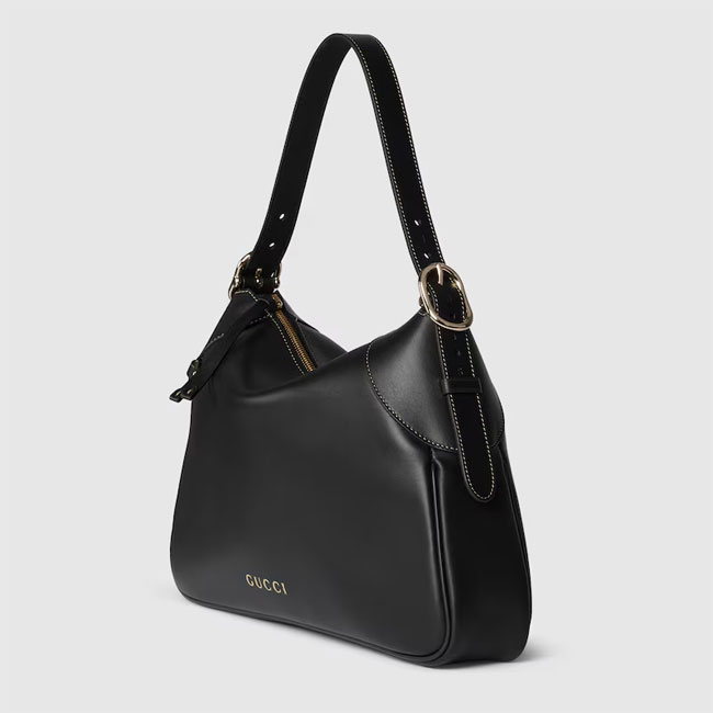 The new GG Emblem collection reinterprets the House鈥檚 history of elegance and craftsmanship. This large shoulder bag features numbered notches on the adjustable shoulder strap, inspired by the equestrian world.