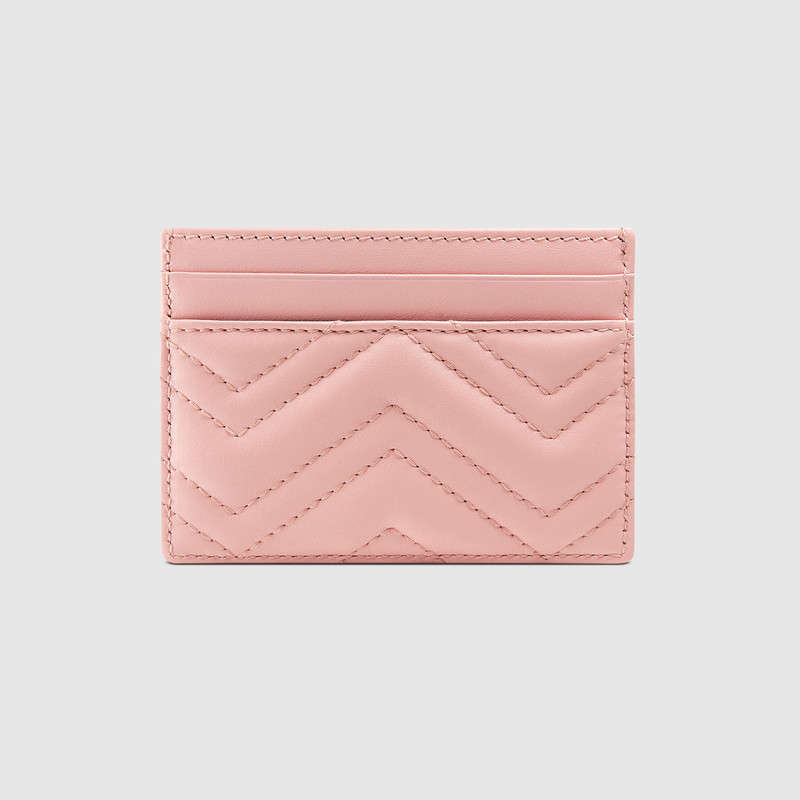 A GG Marmont card case made in matelasse leather with a chevron design and GG on the back.