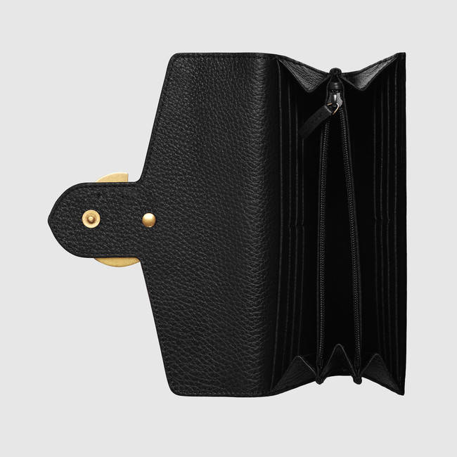 The GG Marmont wallet with the double G closure on our classic continental shape. Made in our signature lightweight leather, noted for its incredible softness and elasticity.