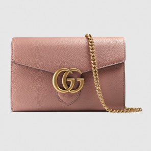 The GG Marmont mini chain wallet has a removable chain shoulder strap and extensive interior space. Made in our signature lightweight leather, noted for its softness and elasticity