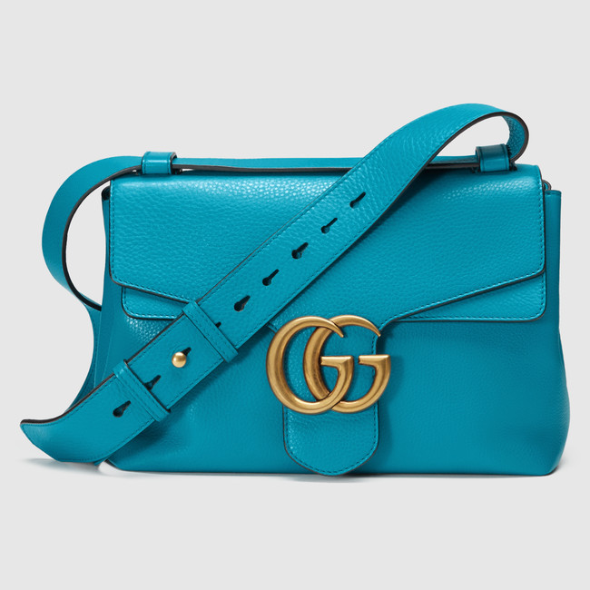 The GG Marmont unstructured handbag with our double G closure. The strap can be adjusted to be worn as a shoulder or top handle.