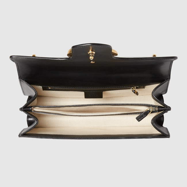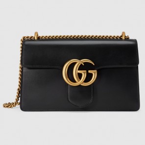 The medium GG Marmont chain shoulder bag has a structured shape and oversized flap closure completed with our Double G hardware. The sliding chain strap can be worn multiple ways, changing between a shoulder and a top handle bag. Made in our shiny leather with an intense appearance, the firm compact feel of this leather is ideal for structured bags.