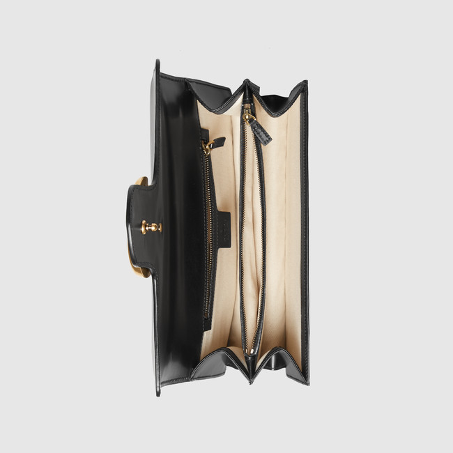The medium GG Marmont chain shoulder bag has a structured shape and oversized flap closure completed with our Double G hardware. The sliding chain strap can be worn multiple ways, changing between a shoulder and a top handle bag. Made in our shiny leather with an intense appearance, the firm compact feel of this leather is ideal for structured bags.