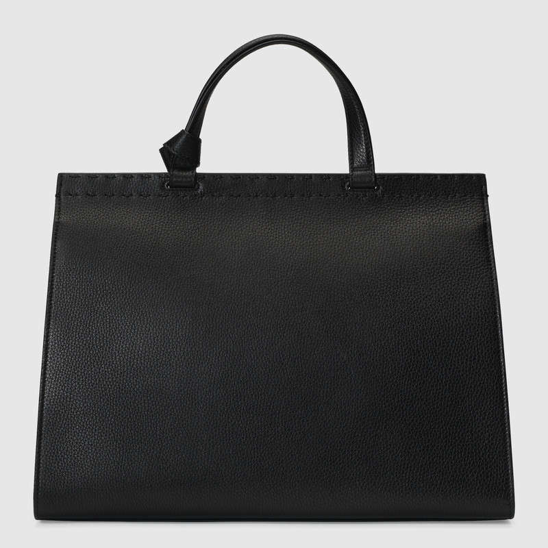 A medium structured leather top handle with top-stitching detail. Made in our signature lightweight leather, noted for its softness and elasticity