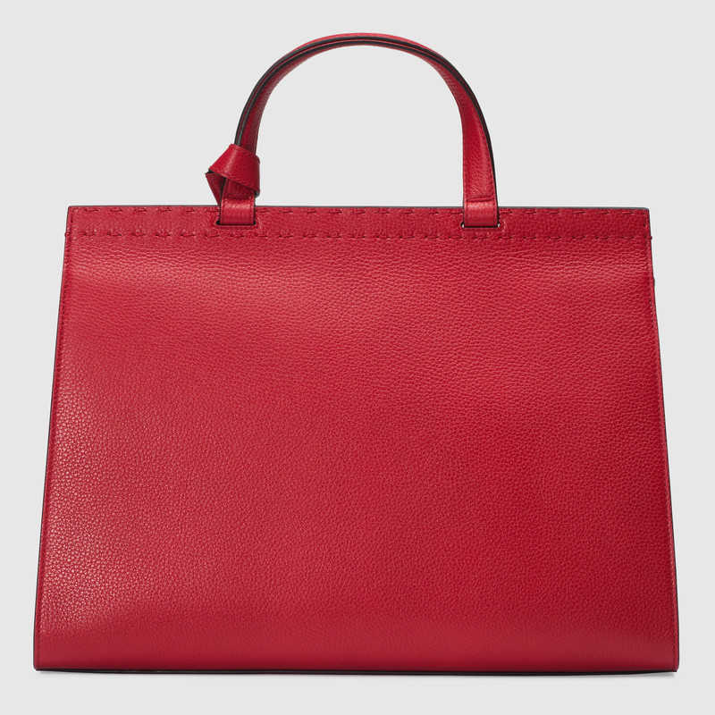 A medium structured leather top handle with top-stitching detail. Made in our signature lightweight leather, noted for its softness and elasticity