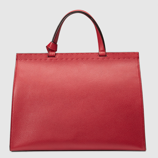 A feline metal detail sits on the front of this structured leather tote with contrast stitching detail. Made in our signature lightweight leather, noted for its softness and elasticity