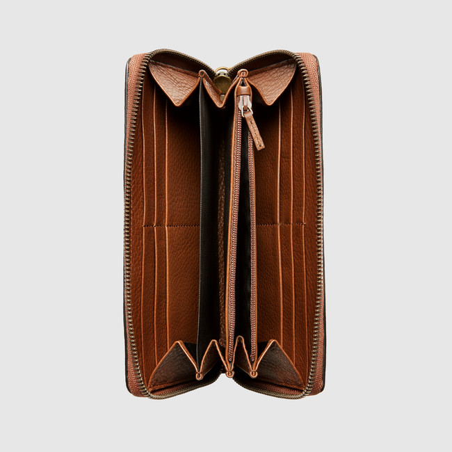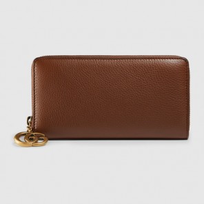 The GG Marmont zip around wallet has an antiqued gold metal zipper pull and is made in our signature lightweight leather, noted for its softness and elasticity.