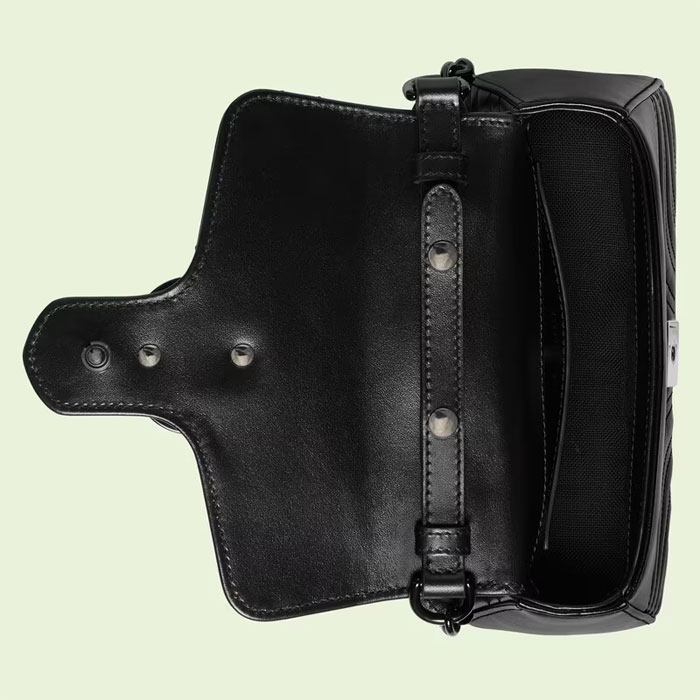 Reflecting its origins, the GG Marmont is presented with a softly structured shape in black matelass茅 leather. The Gucci Love Parade collection is a celebration of both archival codes and new designs. Playing with this concept, the accessory is introudced with monochrome hardware and a top handle.