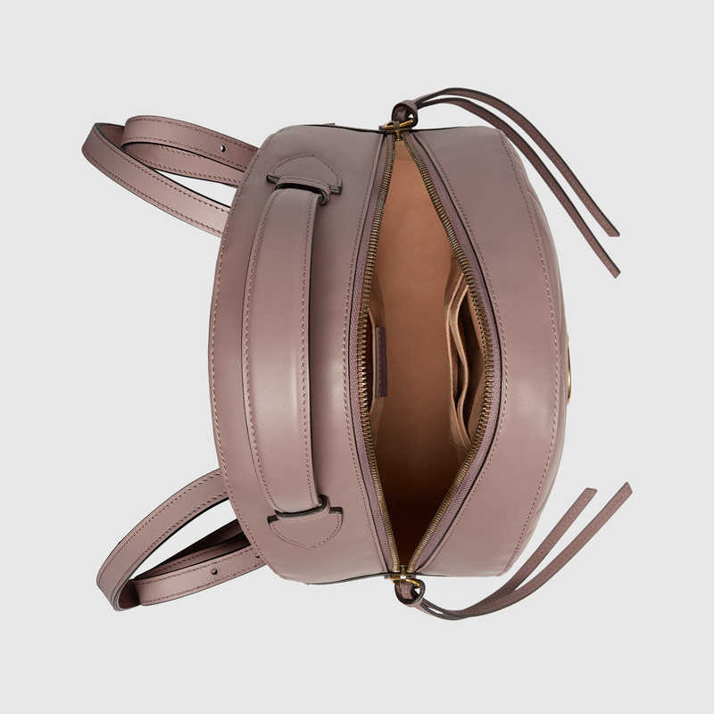 The GG Marmont backpack has a softly structured shape and Double G hardware, inspired by an archival design. The double zip leather pulls are exaggerated and add an unexpected touch. Made in soft matelass茅 chevron quilted leather.