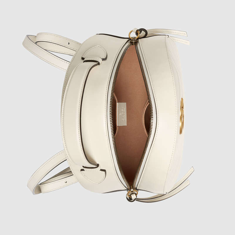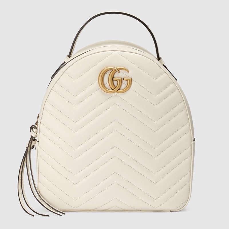 The GG Marmont backpack has a softly structured shape and Double G hardware, inspired by an archival design. The double zip leather pulls are exaggerated and add an unexpected touch. Made in soft matelass茅 chevron quilted leather.