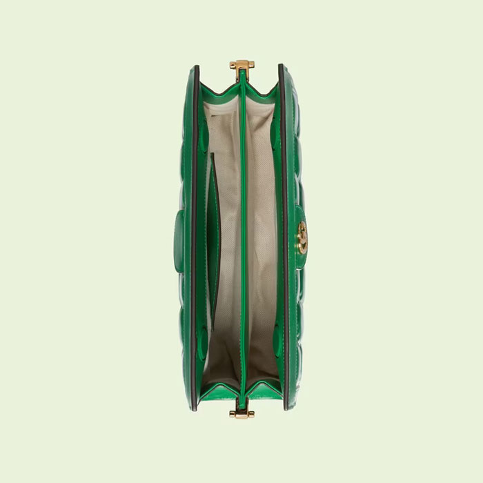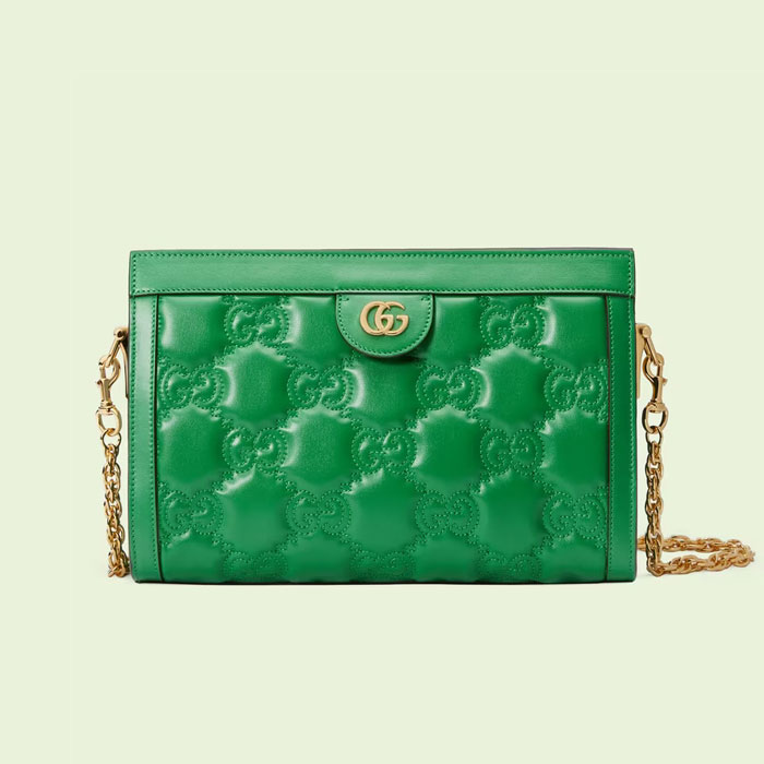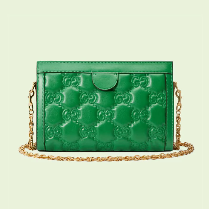 Guccio Gucci's monogram continues to be an essential House code that elevates designs. Bringing over ten decades of history to the fore, the GG becomes a part of a geometric design atop soft Matelass茅 leather. The textured material is crafted into a slimline shoulder bag in green