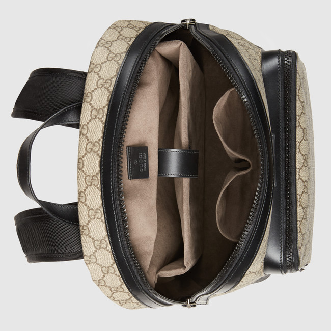 GG Supreme canvas backpack, finished with black leather details and rubberized hardware.